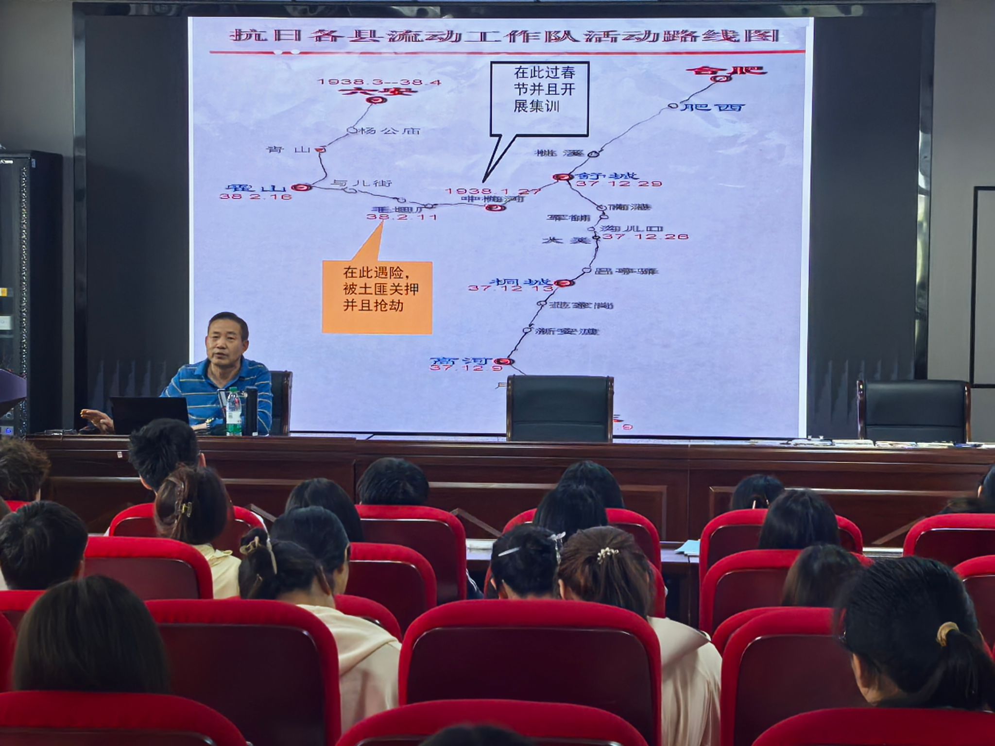 5月8日,44118太阳成城集团邀请吴毅安教授以《铭记抗战精神,传承爱国情怀——安徽青年员工抗日救亡工作团党史》为主题讲授专题党课,员工党员和第71期入党积极分子参加学习。