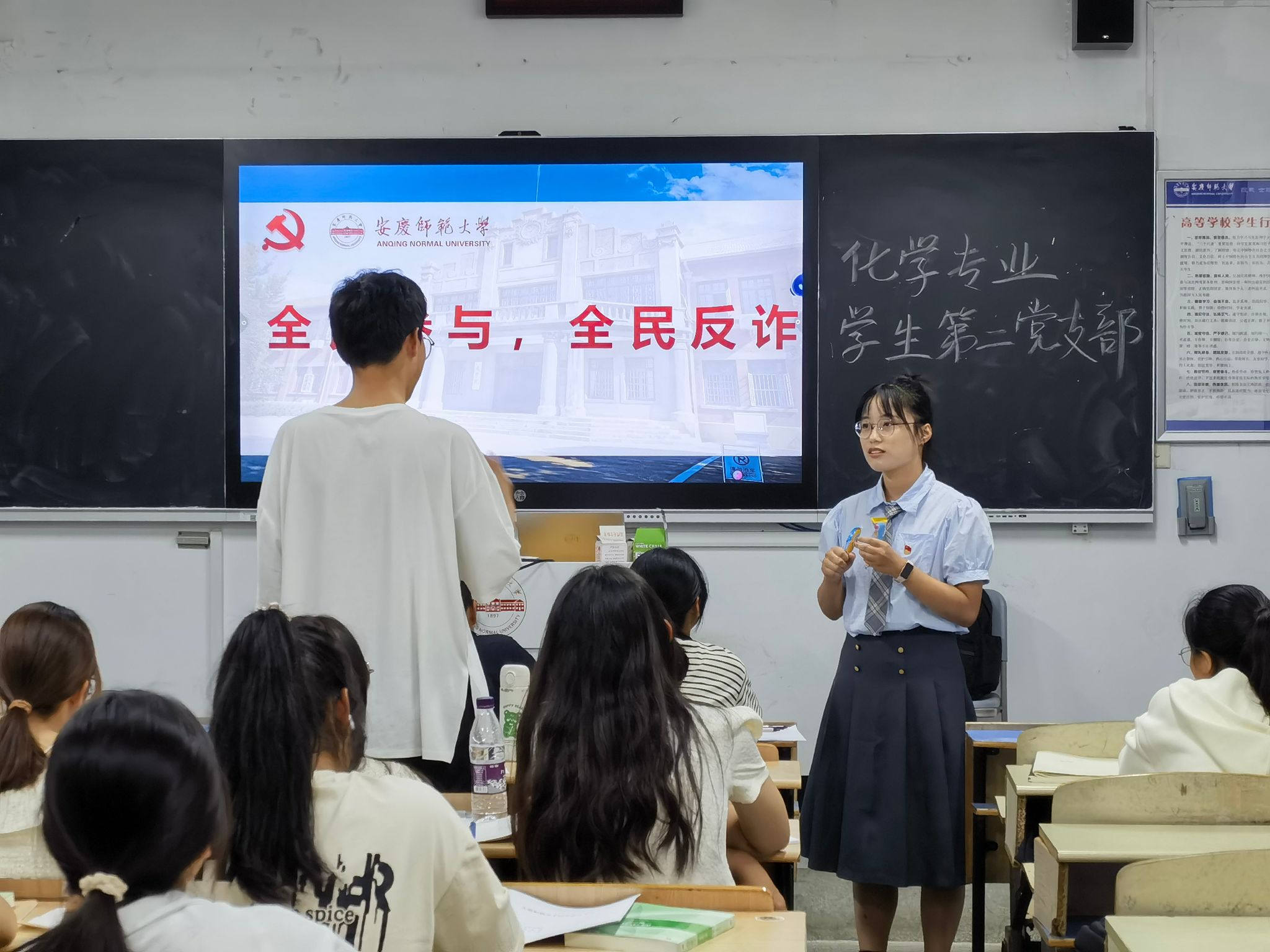 此外,员工党员们发挥模范带头作用,向新生班级开展了反诈宣传教育,围绕十大反诈公式、真实案例和反诈微电影详细分析介绍了新型网络诈骗手段,向同学们普及了各类形式诈骗的常见手法,进一步提高新生反诈骗意识和安全防范能力,推动形成“师生共筑无诈学院”的浓厚氛围。