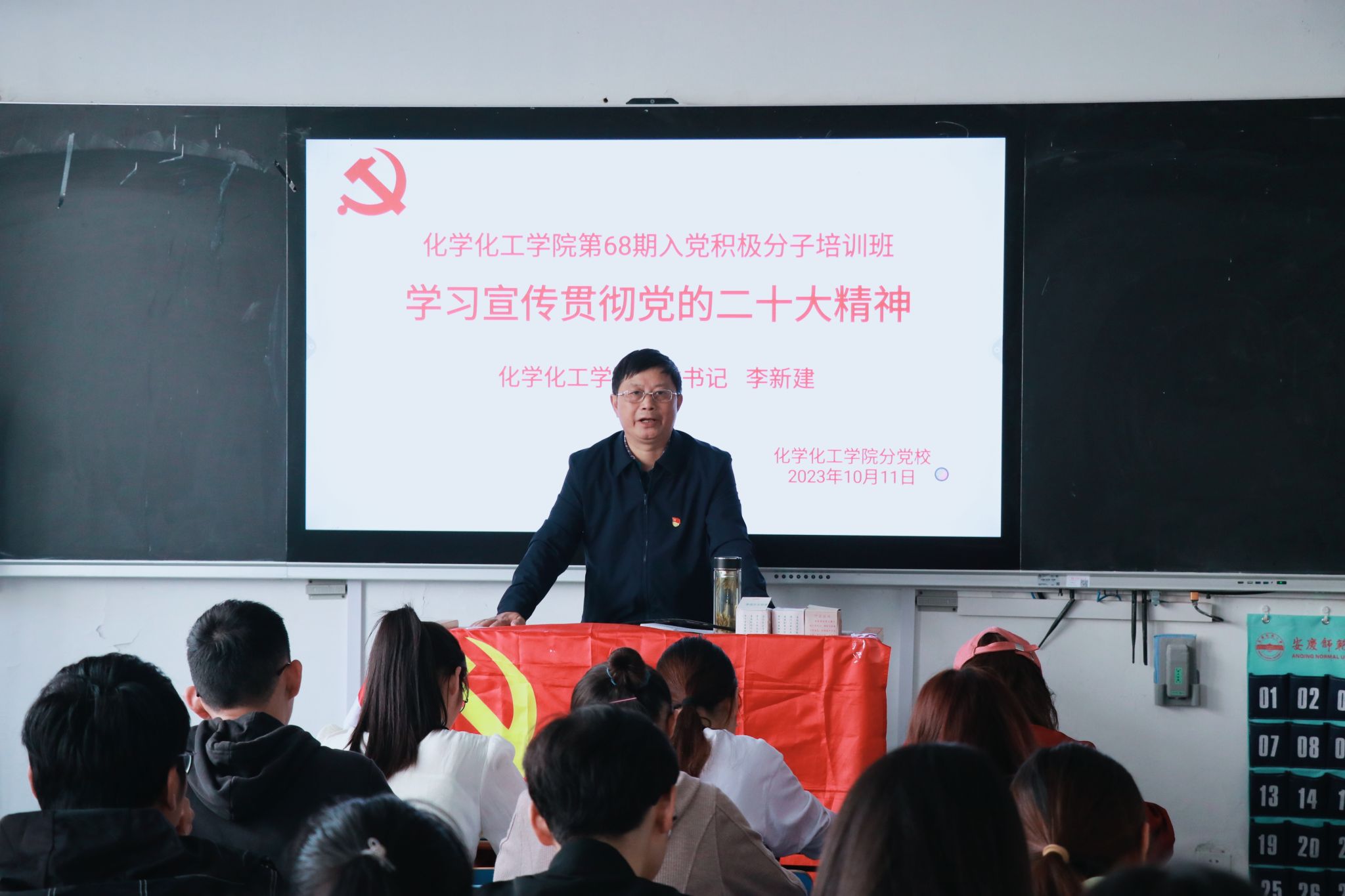 开班仪式结束后,李新建以“深入学习宣传贯彻党的二十大精神 做有理想敢担当能吃苦肯奋斗的新时代好青年”为主题进行第一次授课。他从党的二十大的重大意义、党的二十大的主题、过去5年的工作和新时代10年的伟大变革、马克思主义中国化时代化、中国式现代化等多个方面展开介绍,详细解读了党的二十大精神实质,要求学员们结合自身实际深入学原文、悟原理,争做有理想、敢担当、能吃苦、肯奋斗的新时代好青年,让青春在党和人民最需要的地方绽放绚丽之花。(撰写:殷珏萍 摄影:李思梦 审核:鲍青燕)