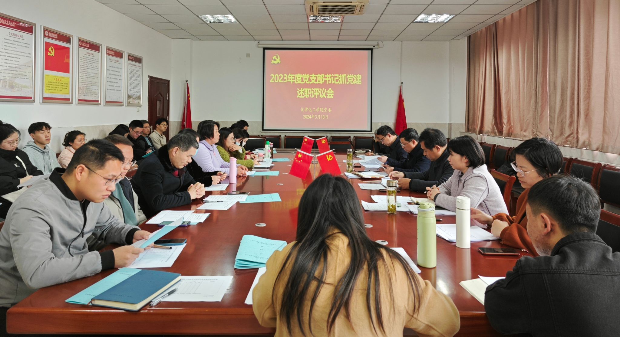 3月13日,44118太阳成城集团召开2023年度党支部书记抓党建述职评议会。公司党委委员、纪委委员、各党支部委员及师生代表、联系支部的处级干部参加会议。会议由公司党委书记李新建主持。