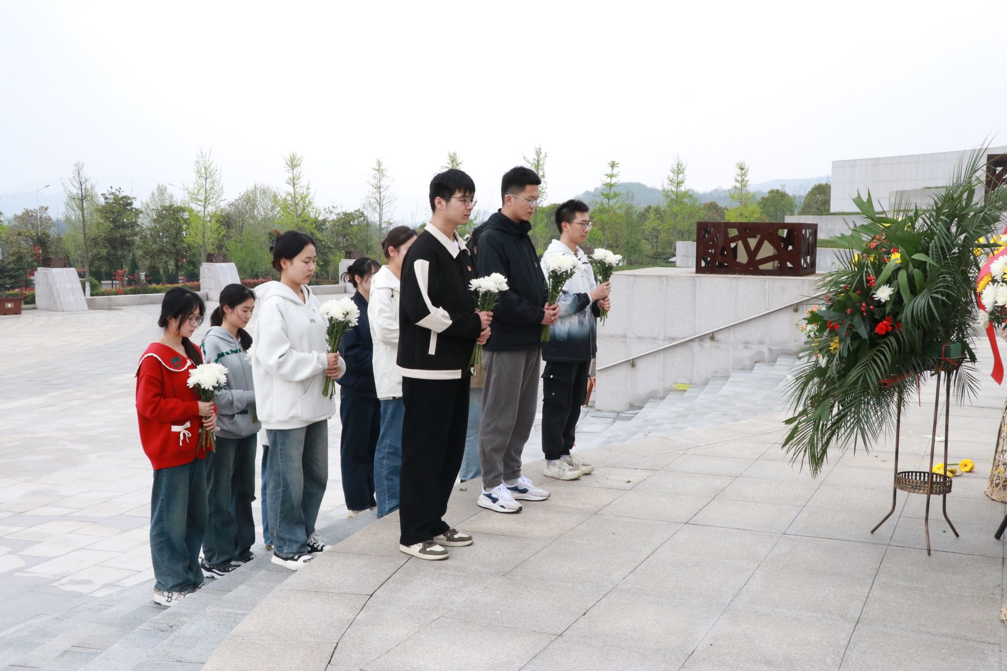 在革命烈士纪念碑前,全体师生昂首肃立,敬献花束,向为民族独立、国家富强、人民幸福献出宝贵生命的英雄烈士表达深切哀思与崇高敬意。