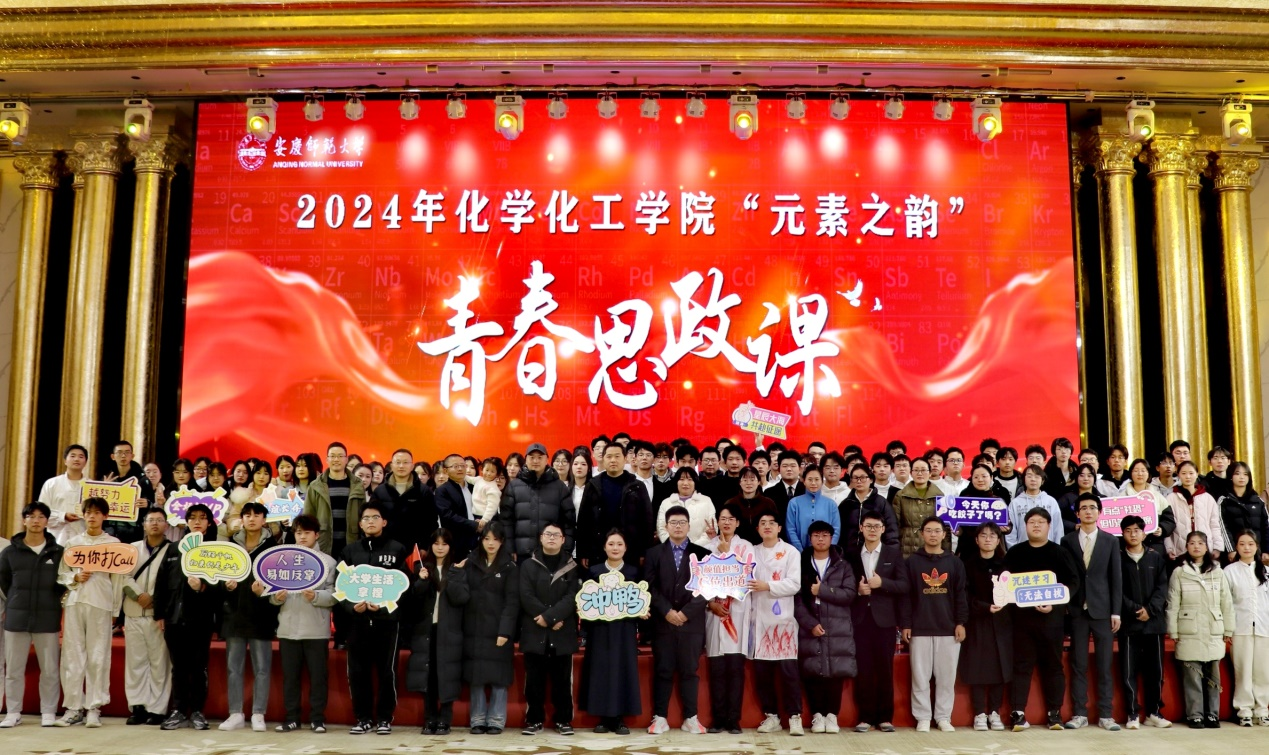 本场思政课将思政引领与艺术表演有机结合,融舞蹈、演奏、小品、朗诵、走秀等多种艺术形式于一体,实现“艺术、思政、专业”三重奏。通过艺术的感染力,让思政课堂充满活力,让专业学习焕发光彩,让价值引领落地生根,全方位展现学院学子的才艺与风采,提升思想政治教育的亲和力。思政课由2023级学科教学(化学)专业研究生马虹担任串讲人,由一首《春“Zn”萌动》乐队弹唱拉开帷幕;舞台剧《指尖上的诱惑》在幽默中蕴含哲理,激发了观众对数字时代生活方式的热烈探讨与深刻反思;歌曲串烧《追光逐梦》,唱出了青年人勇敢追梦、不懈奋斗的青春宣言;小品《安师第一神医》凭借高超的演技及幽默的语言,赢得了观众的阵阵掌声;《2024实验室冬季时尚穿搭》大胆融合科学与时尚,以化学元素为灵感来源的服装设计与时尚潮流碰撞出奇妙火花,为观众呈现了一场别开生面的时尚走秀盛宴。