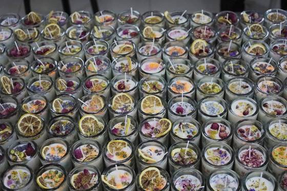 倒入大豆蜡,用玻璃棒搅拌蜡锅中的大豆蜡使其融化,将蜡液倒入贴有定制校徽、院徽的玻璃烛台中,加入薰衣草、玫瑰等干花,洒上粉色、橙色等闪光粉,放置两小时,一杯“DIY”香薰蜡烛便“新鲜出炉”了。负责人材料化学专业2020(2)班的姚怡霏介绍到,由于香薰蜡烛制作过程简便、成品易保存且独特美观,便将其选定为“毕业惊喜”。“这也算是我们与学长学姐们的最后一场‘邂逅’。”
