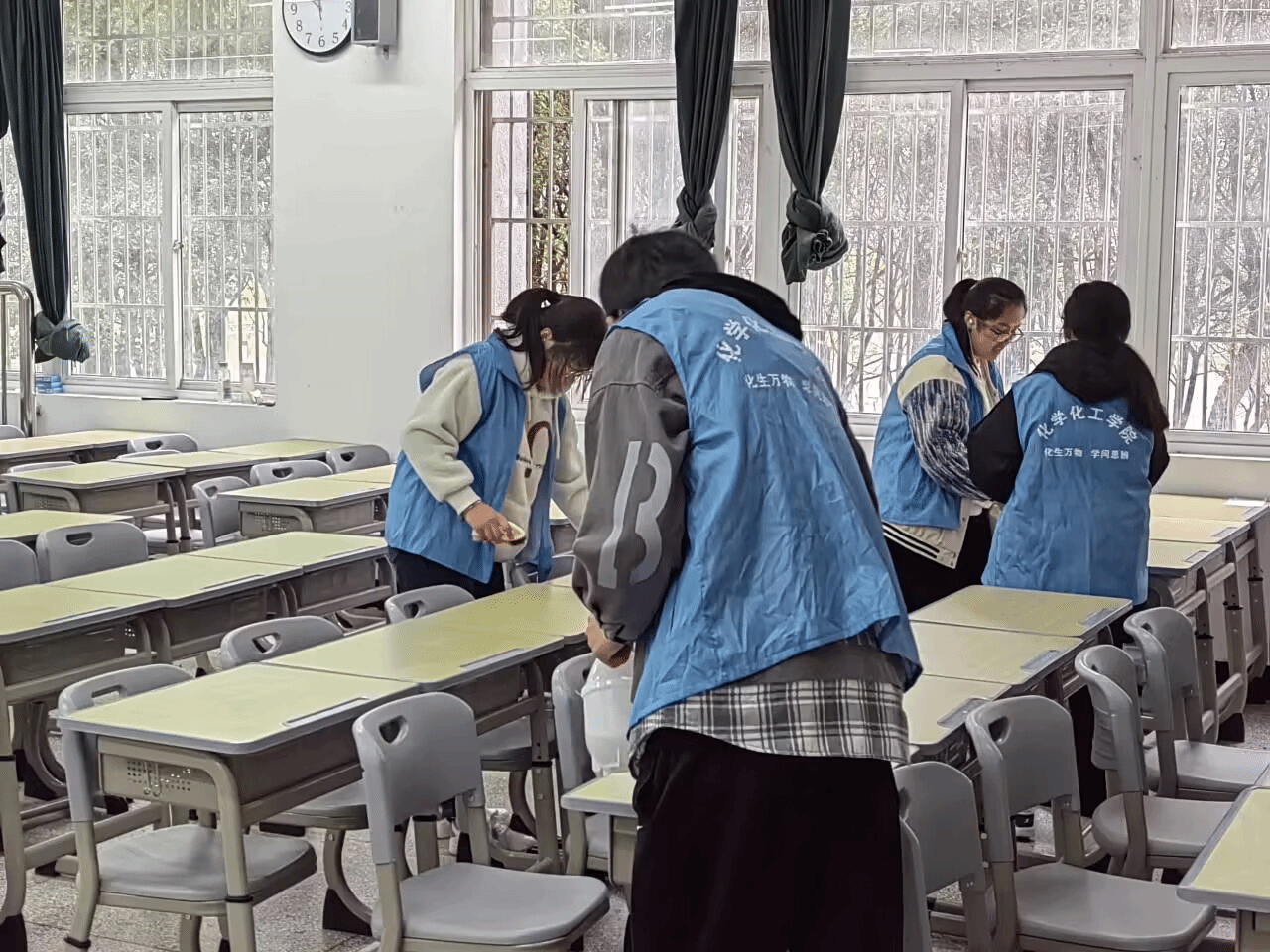 近日,由44118太阳成城集团团委主办,2022级化学工程与工艺1班承办开展了“传承雷锋精神,争做文明先锋”教学楼桌面深度清洁主题活动。
