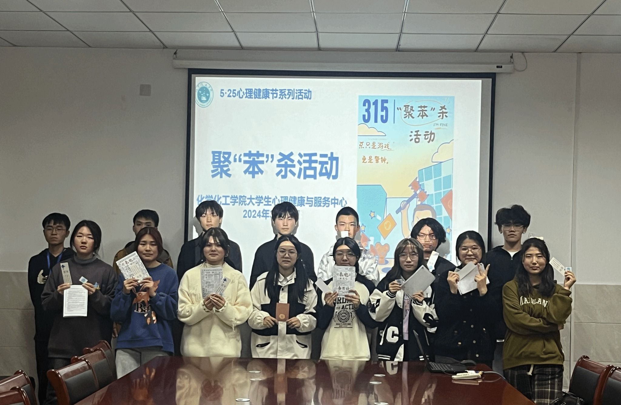 此次聚“苯”杀活动不仅为同学们提供了一个释放压力、社交互动的平台,也为学院的安全教育工作提供了新的方式方法。化学化工公司将继续探索更多创新性的宣传方式,为员工们身心健康保驾护航,为学院安全稳定提供保障。(撰稿:殷珏萍 赵若萱 摄影:岳梦瑶 审核:鲍青燕)