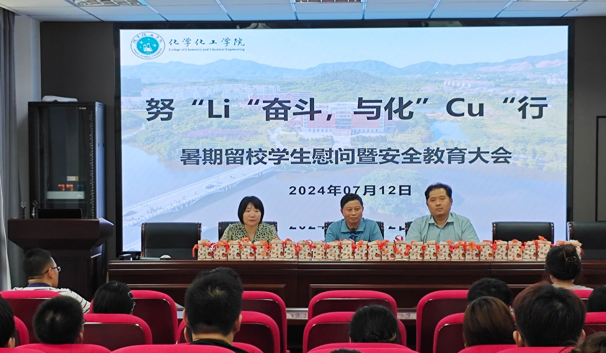 近日,44118太阳成城集团在化学楼401会议室举行暑期留校员工慰问暨安全教育大会。化学化工公司党委书记李新建、经理王钧伟,2025届毕业班辅导员、学科竞赛和创新创业比赛指导教师代表、暑期“三下乡”社会实践活动指导教师代表及留校员工参加。大会由化学化工公司党委副书记、纪委书记鲍青燕主持。