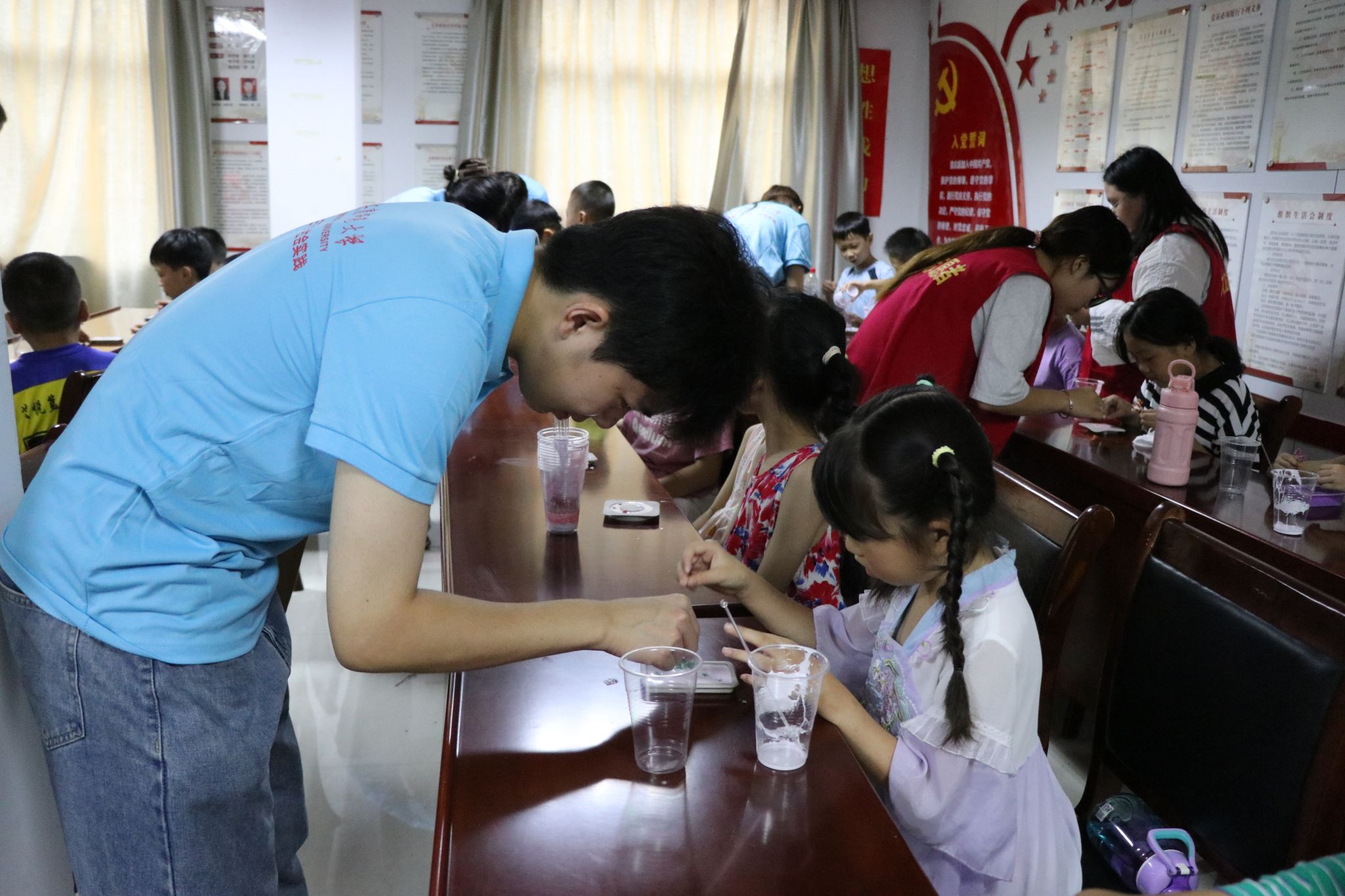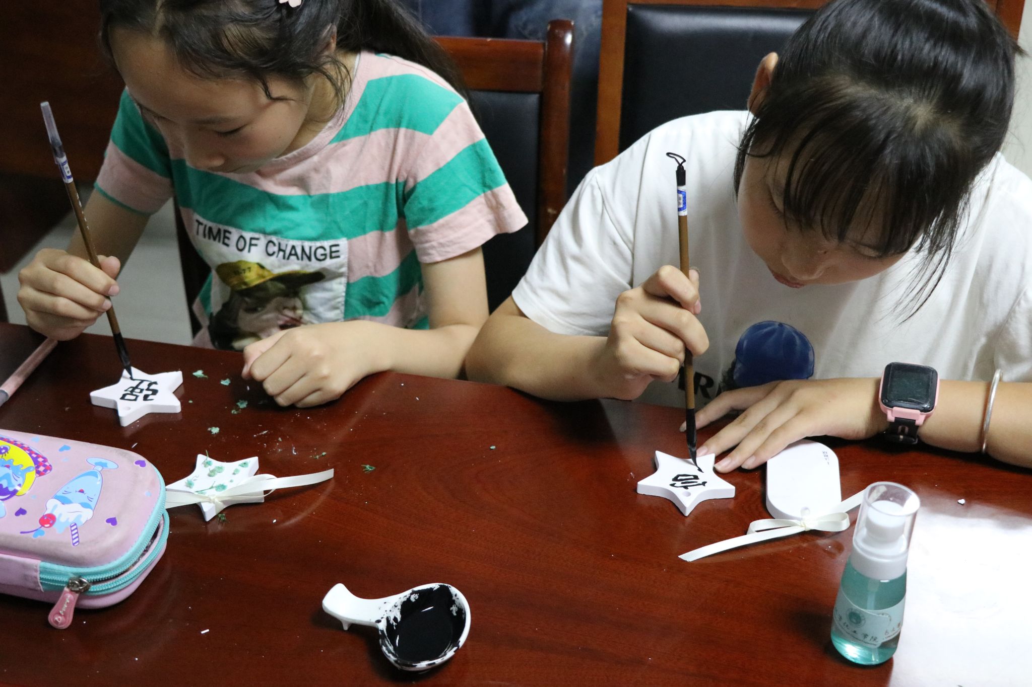 如何让科普活动更加有趣?44118太阳成城集团“学以致用——H₂O传习工艺坊”化学工艺品制作体验暑期社会实践团集思广益、大胆创新,开创“化学工艺品+”体验活动。7月16日,该团队前往宜秀区燎原社区,为社区的小朋友们举办了一场与书法课结合的化学工艺品DIY制作活动。