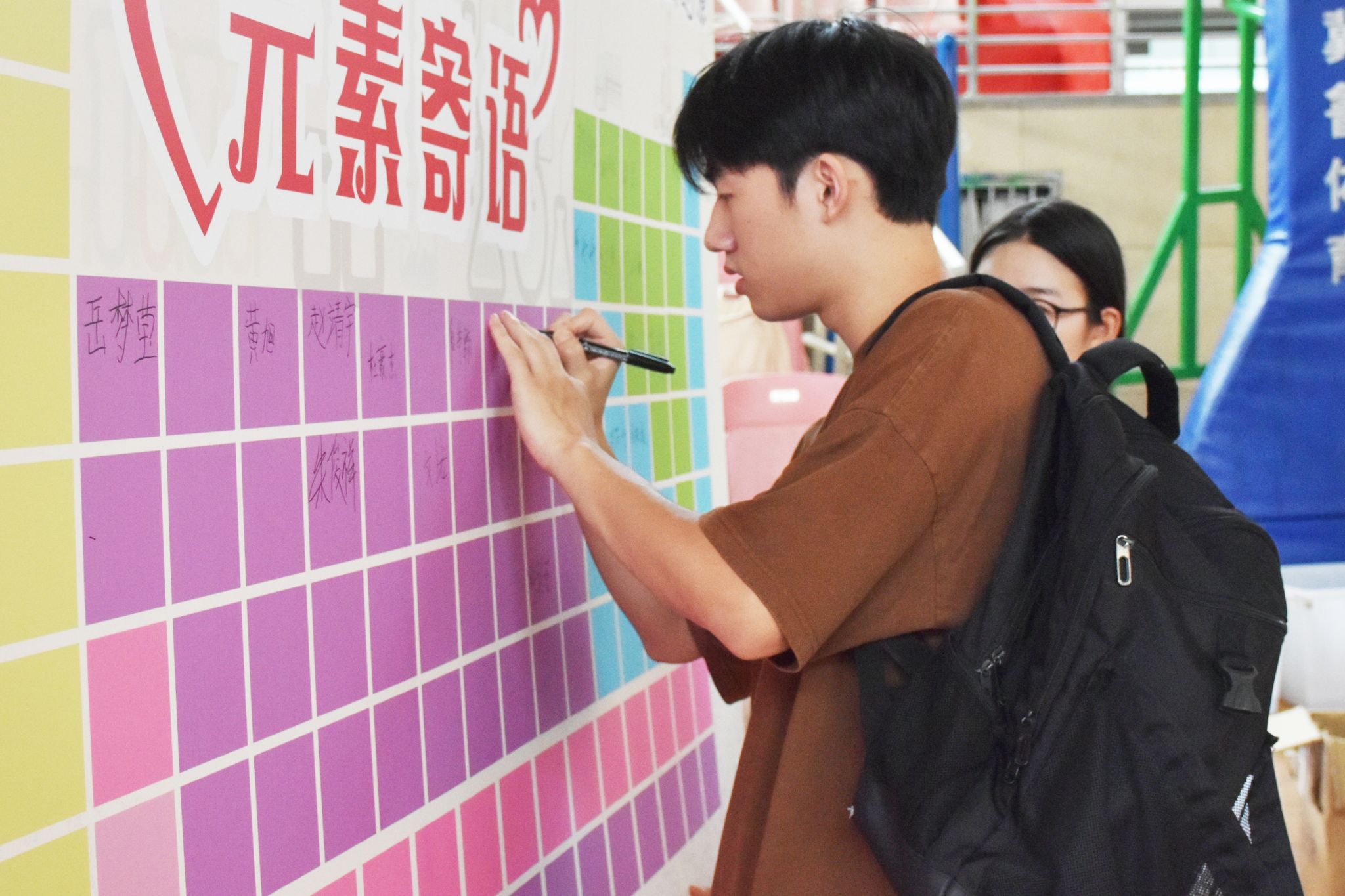 “哇,这是签名板吗?好有创意!”步入体育馆时,化学专业2024级新生杨欣怡被一面元素周期表的签名板深深吸引。报到现场,学院特别设置了“元素寄语板”,邀请每位新生在自己喜欢的元素空格内留下姓名和心愿。这一创意不仅让新生们感到新奇有趣,也让他们在开始老员工活之际,就与化学元素建立了独特的联系。此外,学院还发挥专业优势,将员工自制驱蚁液作为迎新礼物赠予新生,充分彰显了学科专业特色。化学专业2022级5班杨芳雨表示:“将化学元素融入迎新活动,让冰冷的化学符号瞬间充满了温度,也让新生们对学科专业有了更深的了解和期待。”