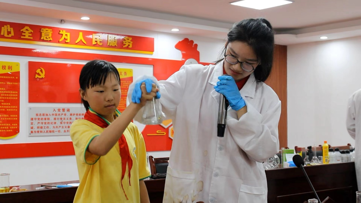 科学筑梦启智慧,实践为镜显担当。“筑梦大别山”科普公益实践团队提出“一个系统、二个方案、四个步骤、六种举措”的志愿服务模式,提高科普志愿服务的覆盖率和影响力。6年来,该实践团队接力开展科普公益服务,足迹遍及安徽、湖北、江西、山东4个省份,行程超过两万公里。今年暑假,团队带领创意实验走进江西省井冈山市,山东省泰安市、临沂市的10余个小学和社区,开展趣味化学科普公益课堂,提升少年儿童科学素养,激发他们对于科学探索的兴趣。暑假期间,该团队还荣获安徽省志愿服务大赛银奖,充分彰显学院师生的社会责任感与创新能力。