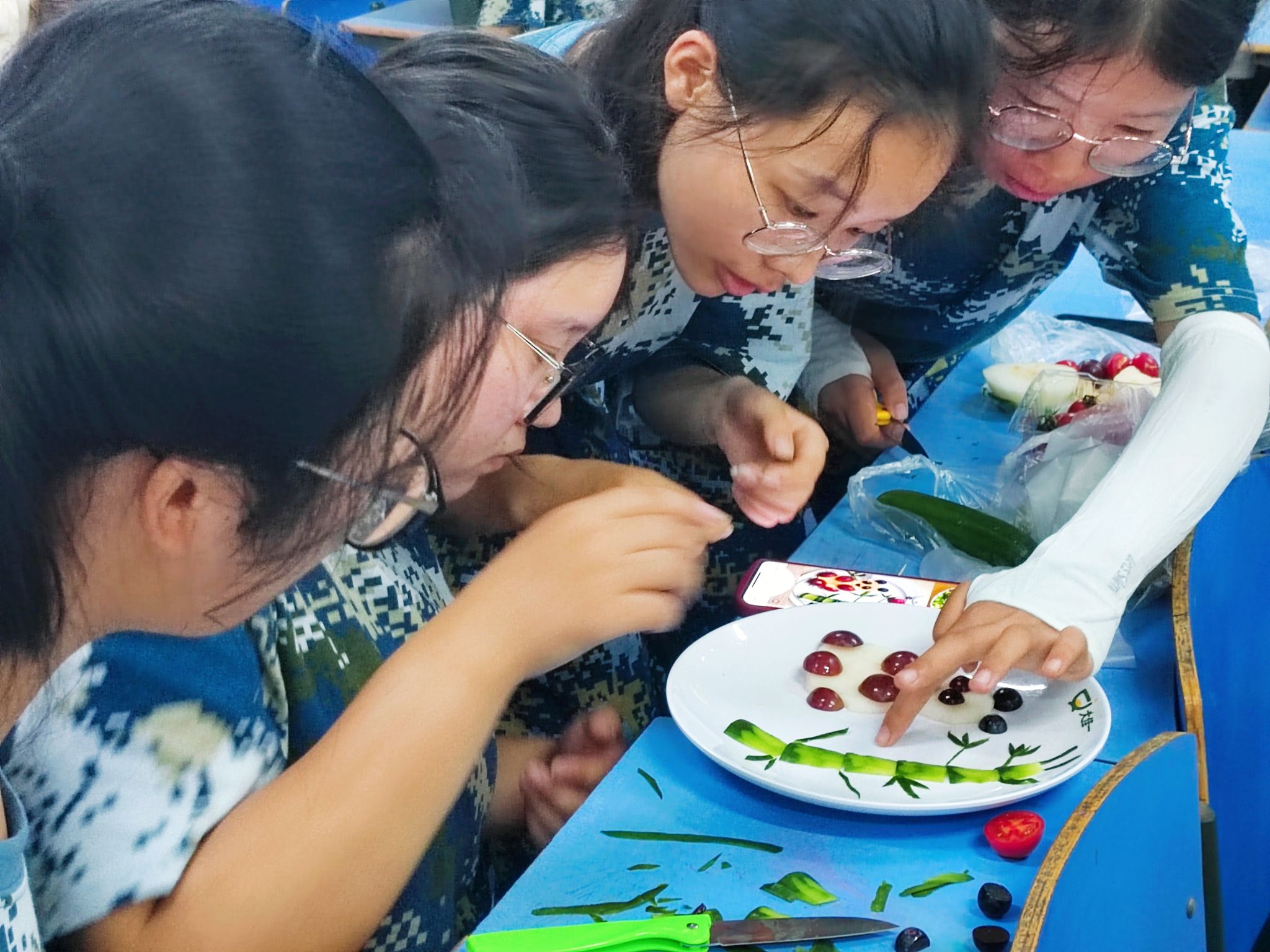“哇,黄瓜做枝条,石榴籽做花瓣,活脱脱的艺术品,这是有专业厨师的潜质啊。”近日,44118太阳成城集团在教学楼C103举办第一届“果”然有爱,拼出精彩——迎新创意水果拼盘赛,16支队伍参赛其中还包括2支研究生代表队。