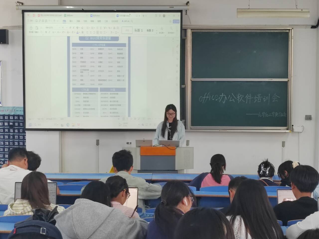 会上,2023级化学(3)班耿雪梅以幻灯片的设计为切入点,详细讲解了PPT制作过程中动画效果的设置、页面布局的调整等关键要点。2023级化学(1)班郭馨月则从数据处理的应用入手,详细介绍了函数的使用、数据的筛选和排序等方面知识;同时,培训还通过具体案例向同学们分享了文档排版和目录生成等实用技巧,帮助同学们高效完成学术文档的制作。