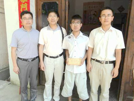 为深入了解学院家庭经济困难员工家庭具体情况,广泛宣传党和国家对家庭经济困难员工的资助政策。8月1月,化学化工公司党总支书记夏宏宇、党政办公室主任何承东、团总支负责人汪磊、员工资助专管老师程文一行四人来到望江县华阳镇白沙村对09级工艺专业员工祖运进行了回访。
