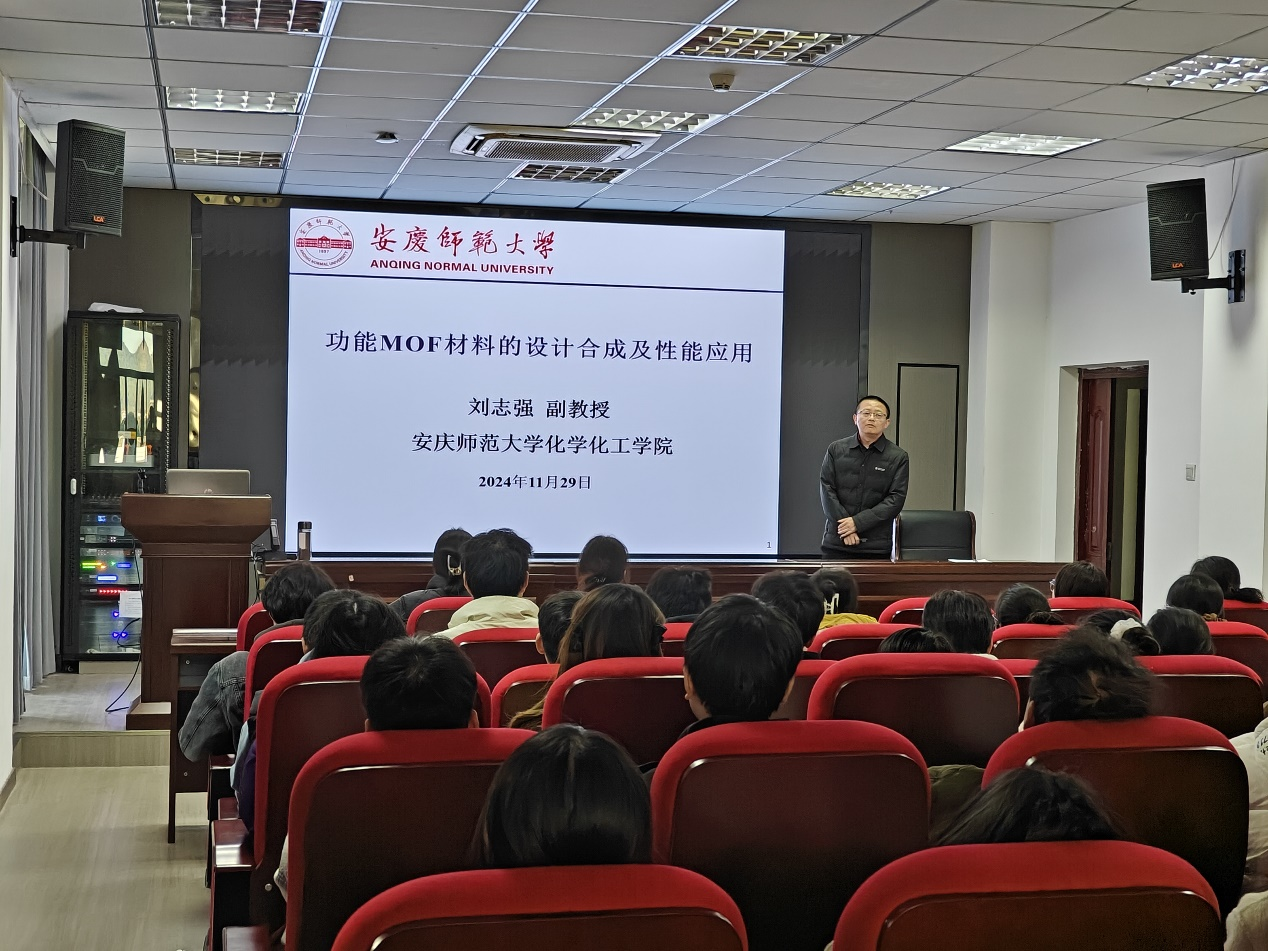 11月29日下午,44118太阳成城集团刘志强副教授在化学楼H401报告厅为化学专业研究生做了一场题为“功能MOF材料的设计合成及性能应用”的学术讲座。