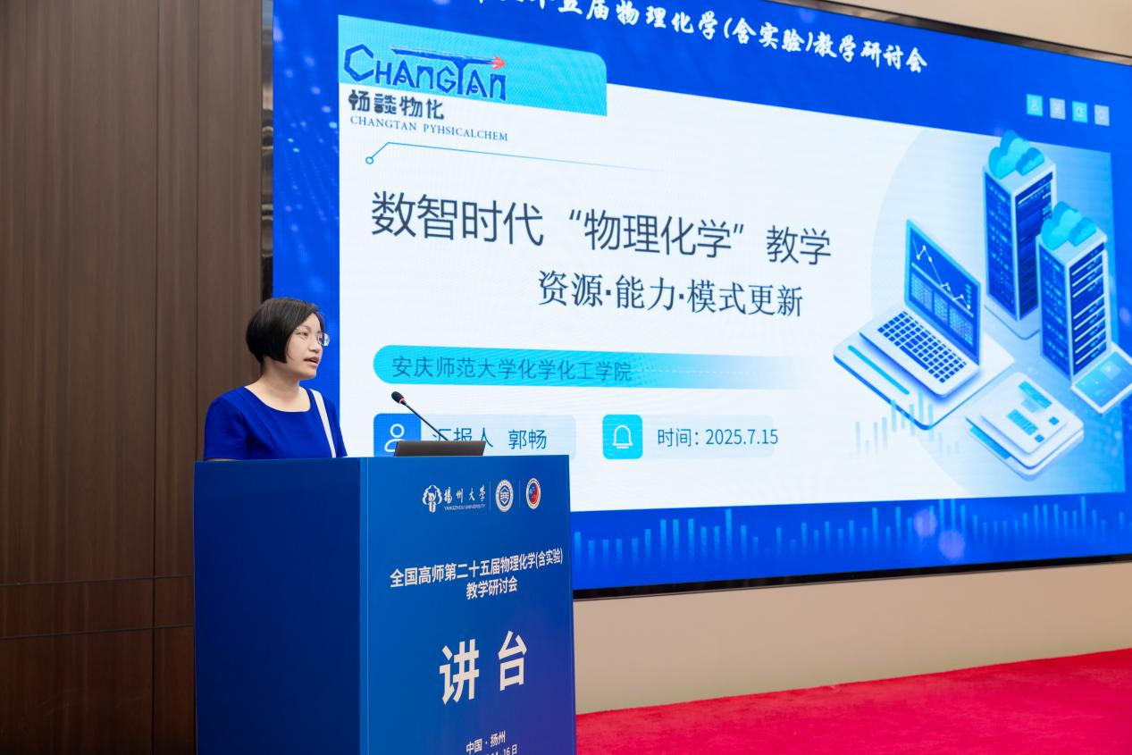 暑期,由全国高师物理化学教学中心组主办,扬州大学化学与材料学院和国家级师范院校物理化学课程虚拟教研室共同承办的“全国高师第二十五届物理化学(含实验)教学研讨会暨优秀教学案例展示活动”在扬州成功举办,44118太阳成城集团郭畅教授参会。