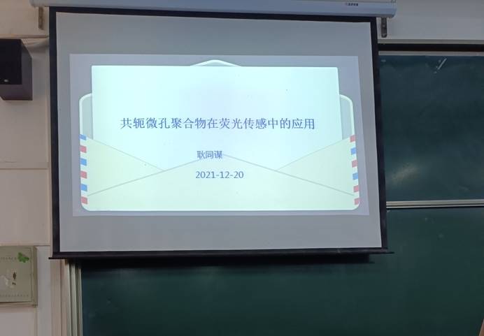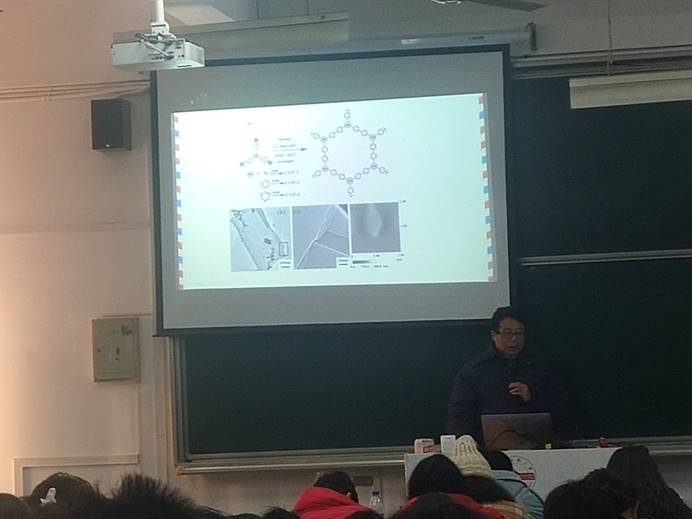 12月20日上午,44118太阳成城集团耿同谋教授在龙山校区教学楼C105室作题为“共轭微孔聚合物在荧光传感中的应用”学术报告, 2019级材料化学专业本科生参加了本次报告会。
