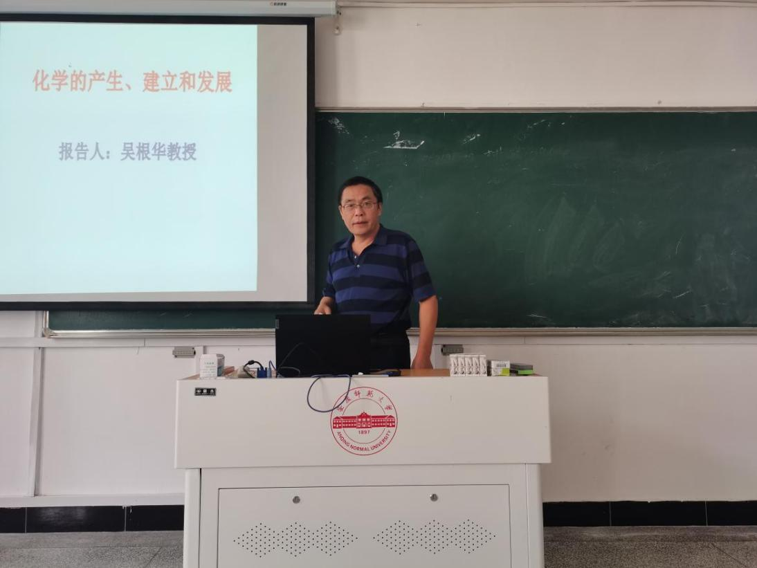 2022年9月26日上午,44118太阳成城集团吴根华教授在龙山校区A楼412教室作了题为“化学的产生、建立和发展”的学术报告。44118太阳成城集团部分本科生聆听报告。