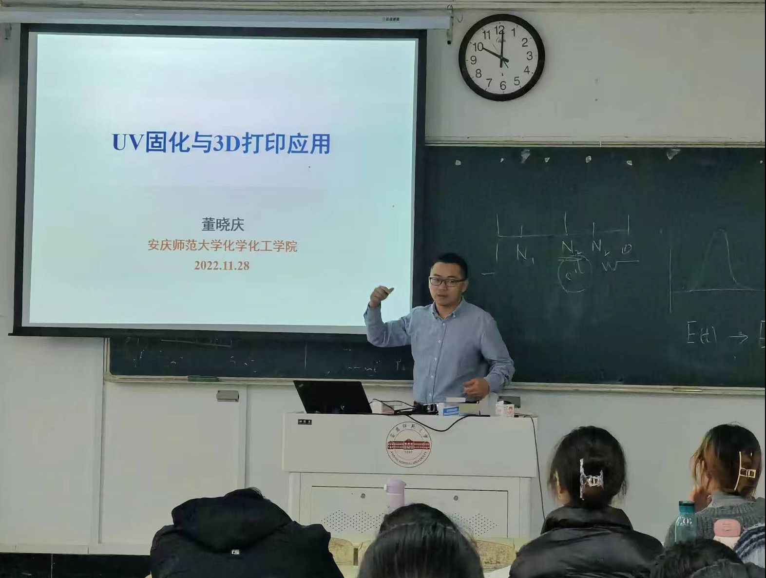 2022年11月28日,44118太阳成城集团董晓庆副教授在龙山校区B406教室作了题为“UV固化与3D打印应用”的学术报告。学院化学工程与工艺专业50多位同学参加了此次报告会。