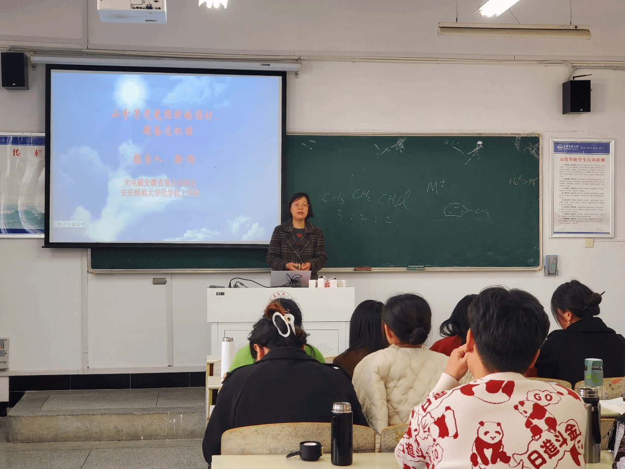 近日,44118太阳成城集团徐衡教授在龙山校区B412教室作了题为“小分子荧光探针的设计、制备及机理”的学术报告。学院化学一级硕士学位授权点30多位师生参加了此次报告会。