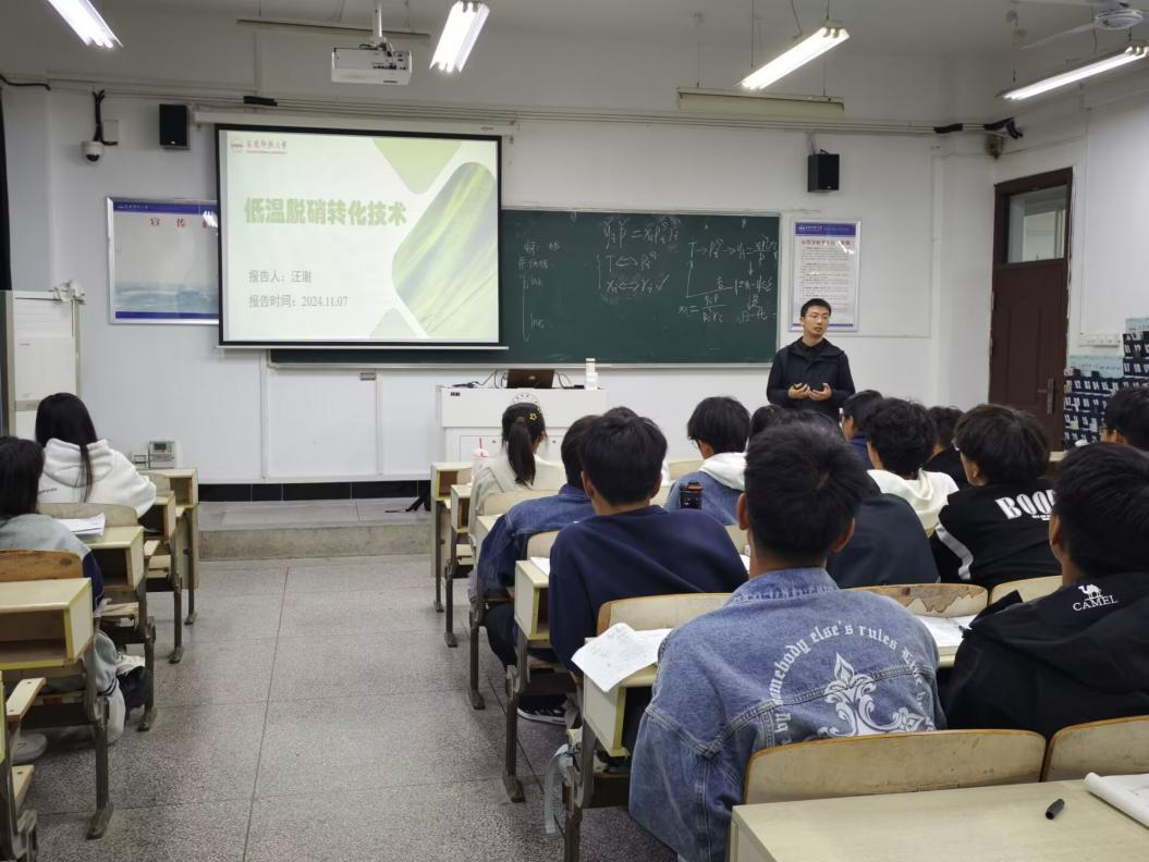 11月7日晚,44118太阳成城集团汪谢博士在教学楼B410教室为材料化学专业2024级员工做了一场关于低温脱硝转化技术的学术报告。