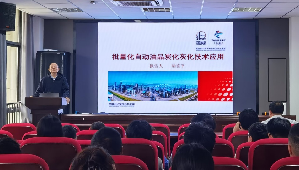 陆克平以《批量化自动油品炭化灰化技术应用》为题,详细介绍了批量化自动油品炭化灰化技术的开发历程与应用效果,展示了企业如何在生产实践中解决技术难题。