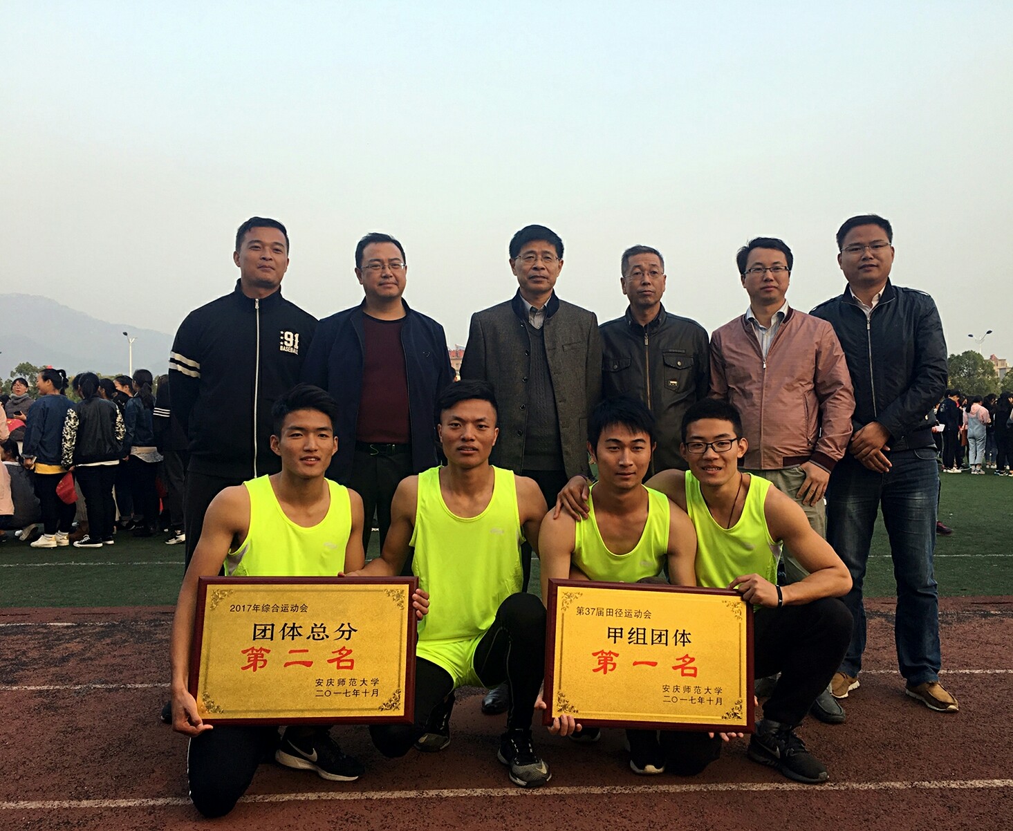 10月29日下午,学校第37届田径运动会圆满落幕。本届田径运动会,44118太阳成城集团共组织110余名学子参加了47个项目的比赛。经过3天的激烈角逐,44118太阳成城集团代表队奋勇拼搏,勇夺13个项目第一、12个项目第二、10个项目第三,以甲组团体总分348.5的高分取得甲组团体第一的骄人成绩,并荣获综合运动会团体总分第二的佳绩。在传统的优势项目上,学院依旧保持着全校领先水平,公司代表队在4×400米、两人三足、掷垒球等项目中表现出色,以巨大的优势夺得第一;在三铁比赛中成绩突出,一举拿下四项第一、两项第二;另外,余亚玲同学还打破了女子甲组1500米校运动会记录。