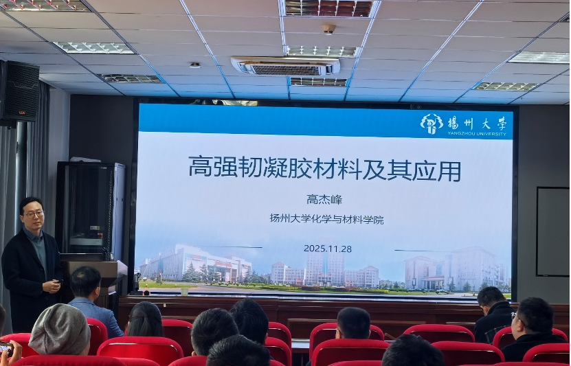 高杰峰以“高强韧凝胶材料及其应用”为题,直指传统水凝胶力学薄弱、稳定性差的核心缺陷,点明其难以满足生物医学等领域需求。围绕此痛点,提出了阶梯式解决方案,即先以溶剂交换技术制备高断裂应变弹性体增强水凝胶,再借外力场诱导构建仿生各向异性PVA水凝胶,适配肌腱修复需求,最终研发的凝胶复合材料,实现抗溶胀性与生物相容性突破,为组织工程应用筑牢支撑。