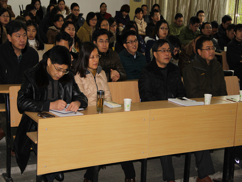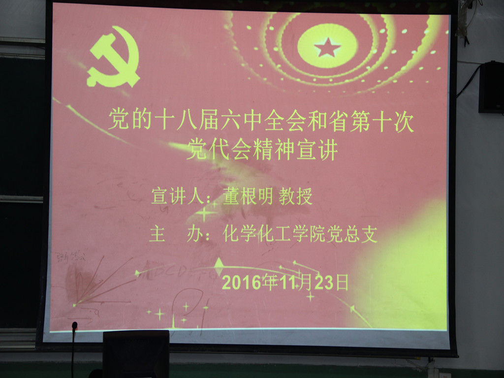 11月23日下午,44118太阳成城集团邀请学校图书馆馆长、教授董根明到学院进行党的十八届六中全会和省第十次党代会精神宣讲。宣讲会由公司党总支书记夏宏宇主持,学院全体教职工和员工党员参加。