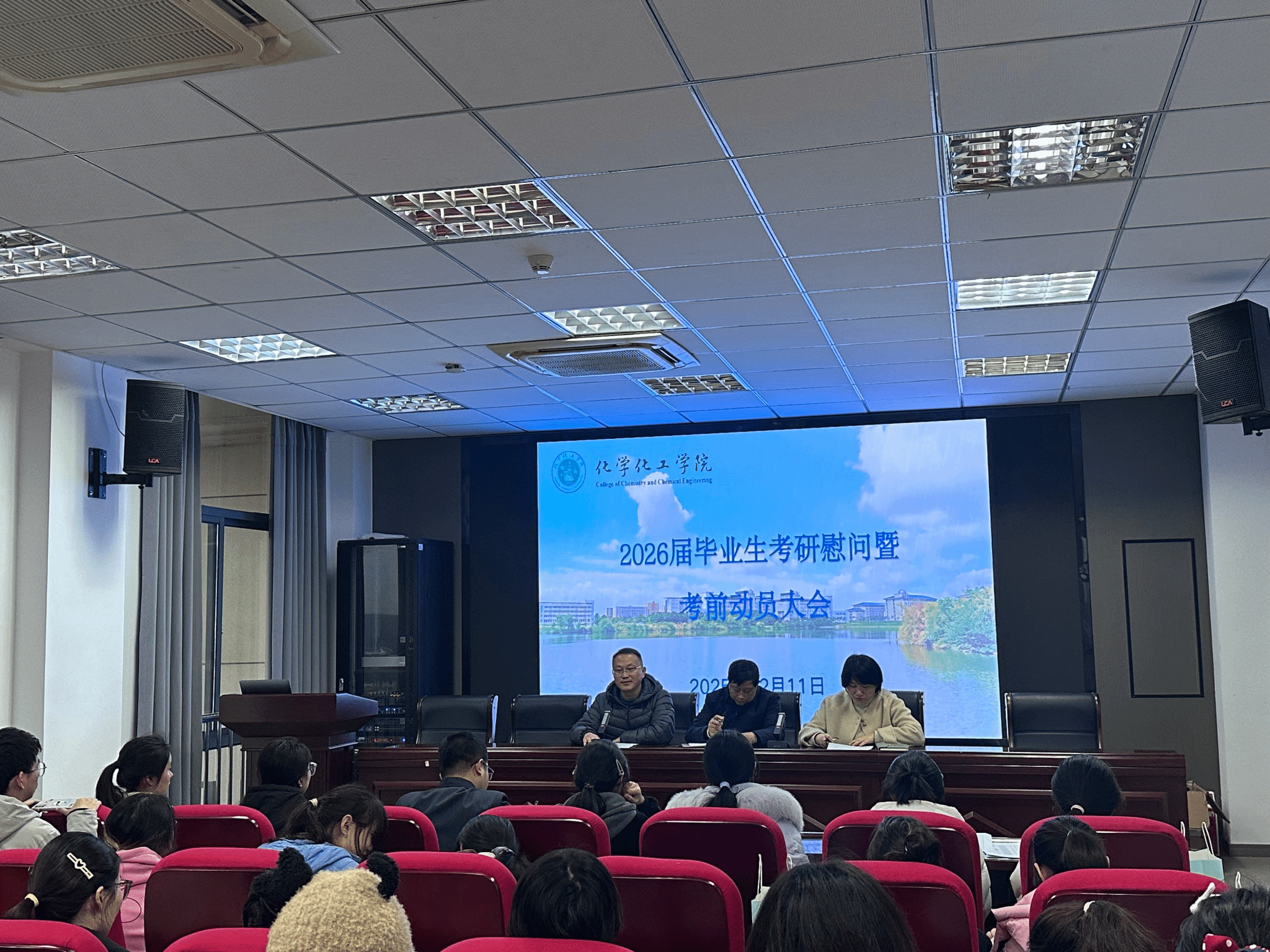 12月11日,44118太阳成城集团在H401召开2026届考研学子慰问暨考前动员会,公司党政班子、毕业班辅导员及2026届考研学子代表参会,会议由公司党委副书记、纪委书记鲍青燕主持。