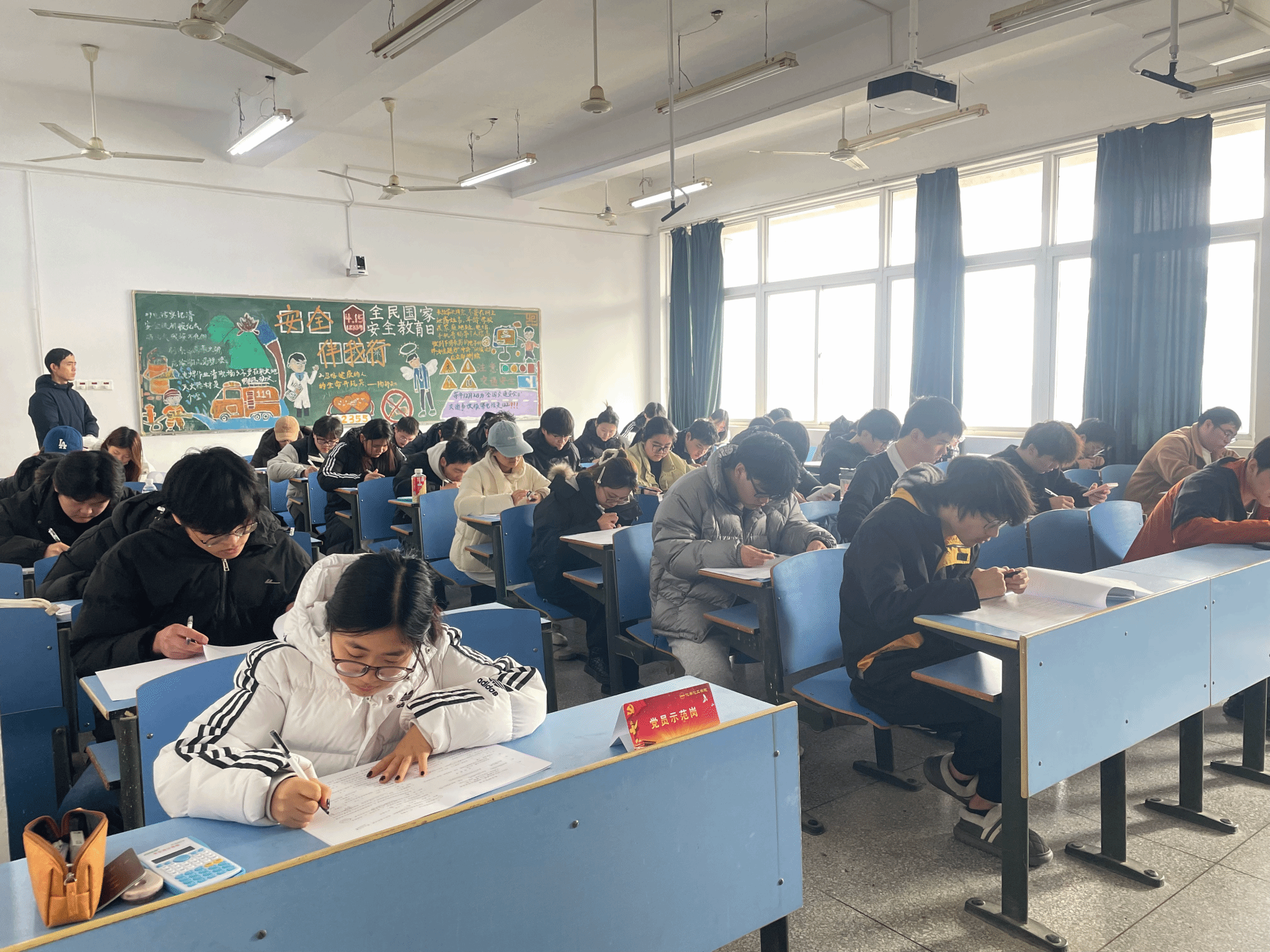 “请佩戴党员徽章、放置‘党员示范岗’席卡,主动接受师生监督!”考试期间,44118太阳成城集团的考场内,员工党员的身影格外醒目。按照活动安排,全体党员在每场考试中均严格落实“亮身份·守诚信”要求,将印有“党员示范岗”字样的红色席卡摆放于桌面左上角,佩戴党员徽章有序进入考场,以实际行动践行党员的责任与担当。考场上,党员们自觉遵守考场秩序,为广大同学树立了良好榜样。“看到党员同学胸前的党员徽章和桌上的‘党员示范岗’席卡,我更深刻地意识到,诚信考试不仅是对自己负责,也是对他人的公平负责。”此次“亮身份”行动,既强化了员工党员的党性意识,也为考场注入了“正能量”,带动更多同学自觉维护公平公正的考试环境,真正实现了“树道德之新风,立诚信之根基”的活动目标。