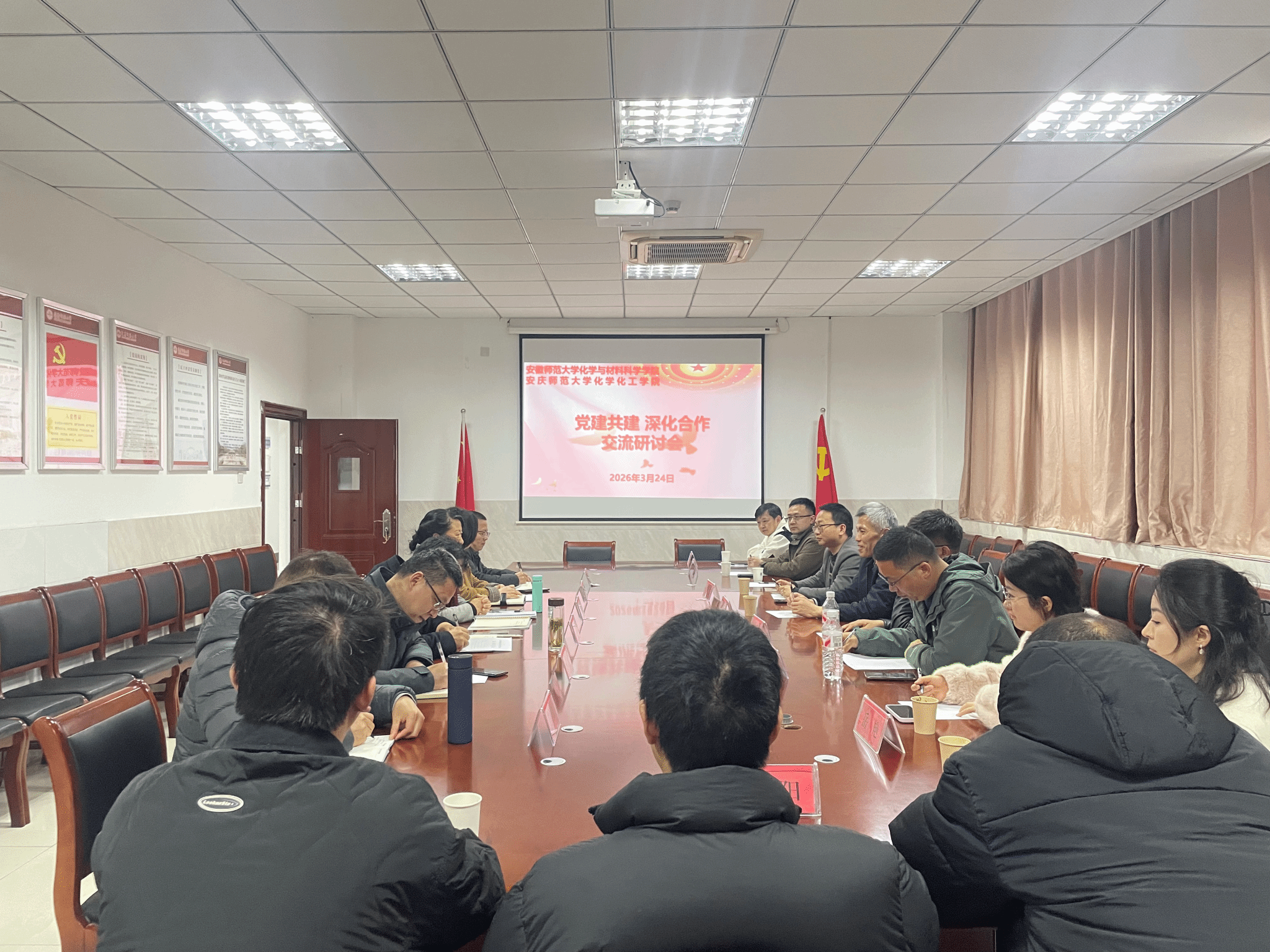 近日,安徽师范大学化学与材料科学公司党委书记梁齐军一行到访公司,双方围绕党建工作、学科发展、科研创新、校企融合等议题开展深入的交流研讨。会议由党委书记陈银凤主持,学院全体班子成员参加。