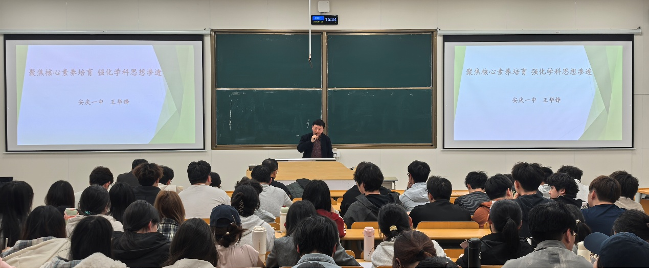 4月8日,学院在教学楼C208举行2024级化学师范生教育见习系列讲座,安庆一中高级教师王华锋、潘丹丹作专题报告。学院经理王钧伟教授主持报告会,化学专业部分教师、2024级化学专业全体员工参加报告会。